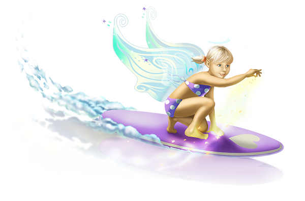 Surf Angel will beckon to your child, “Surf your dreams!” As she returns to her heavenly lookout in the skies above.